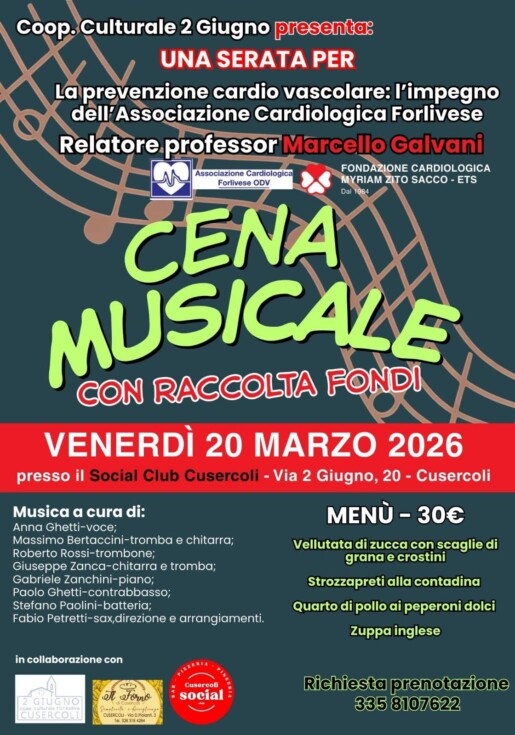 “Cena Musicale” Venerdì 20 marzo 2026